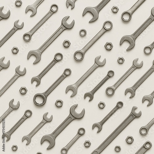 © Eduards V., Naklejka premium Tools pattern of wrenches and nuts background