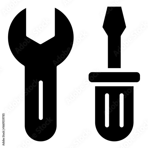 Obraz premium Tools Set Glyph Black Silhouette Icon Design Vector - Wrench and screwdriver representing tools for electrical repair and maintenance