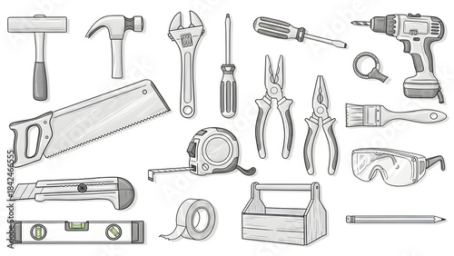 © Ai_Images, Fototapeta premium Tools Set Including Hammer, Pliers, Drill on White