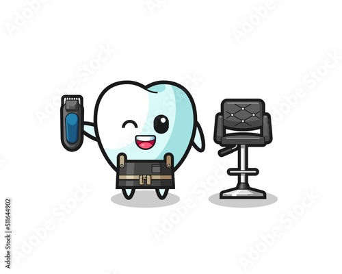 © heriyusuf, Fototapeta premium tooth barbershop is holding a trimer