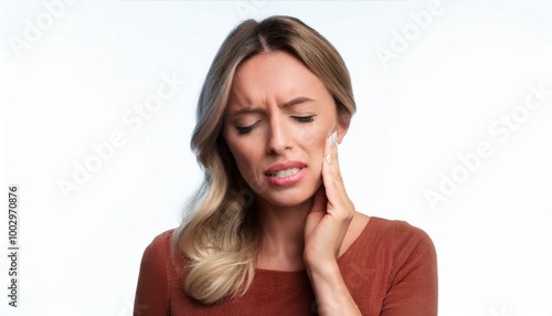 © eliyashevskiy, Fototapeta premium toothache. portrait of a woman holding her aching tooth