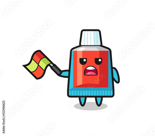 Fototapeta premium toothpaste cartoon as the line judge hold the flag up at a 45 degree angle