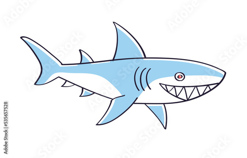 Fototapeta premium Toothy white shark isolated cartoon vector illustration