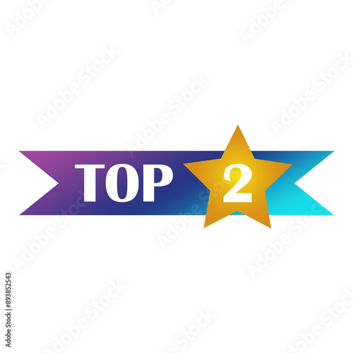 Obraz premium Top 2 award. Gold star symbol. Gradient ribbon vector. Two number detail.