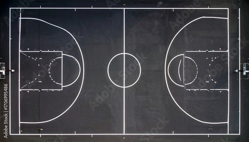 © Zack, Fototapeta premium Top Down Aerial View of an Empty Outdoor Basketball Court.
