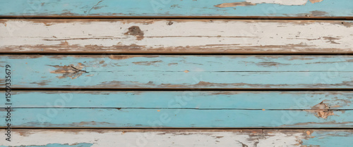 Obraz premium Top-Down Texture of Painted Wooden Boards with Chipped Color
