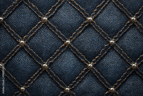 © Maxim Chaploutskiy , Naklejka premium Top Down View Denim Stitched Grid Pattern High Detail Fabric Texture