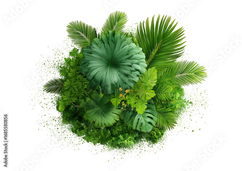 © ram, Fototapeta premium Top-down view of a lush, green, tropical plant arrangement