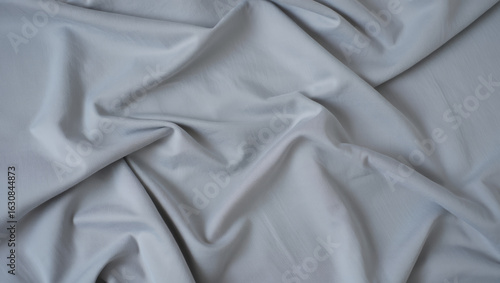 Obraz premium Top-down view of a soft light grey fabric with drapes and folds, creating a...