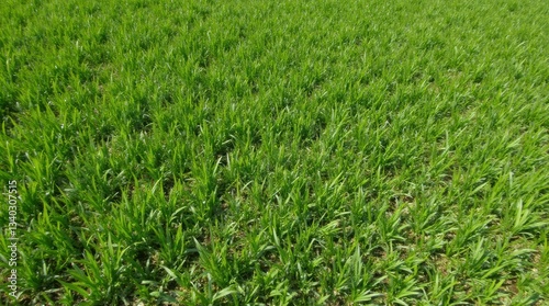 Obraz premium Top-down view of a well-maintained lawn with freshly trimmed edges, smooth and even grass, illuminated by bright sunlight on a clear day.
