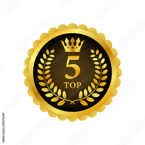 Naklejka premium Top 5 label. Golden laurel wreath icon. Vector stock illustration.