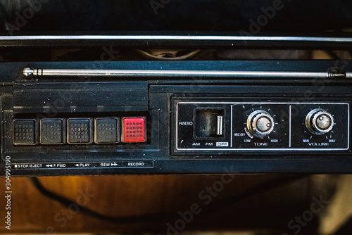 Fototapeta premium top of an old and dirty retro radio tape recorder showing buttons and dials