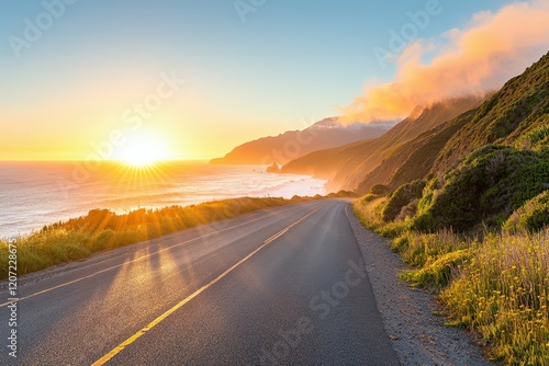 Naklejka premium Top of Reinebringen - Lofoten. Beautiful simple AI generated image