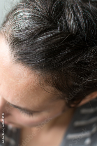Fototapeta premium Top of woman's head: gray hair growing in