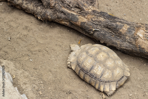 Fototapeta premium Top shoot of turtle crawls on earth