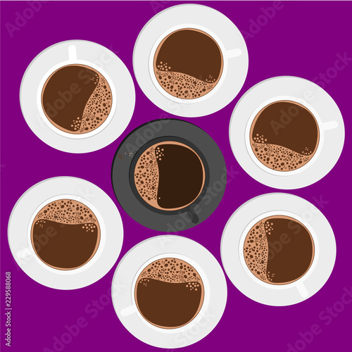 Obraz premium top view black coffee cup around with white cup.