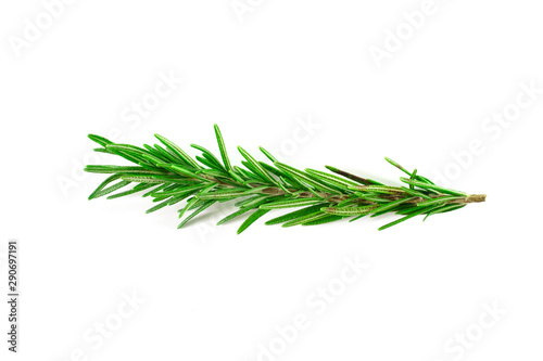 © otello-stpdc, Fototapeta premium Top view, Branch and Leaf of fresh raw rosemary isolated on white background. Tiwgs - leaf green. Organic and herbal nature concept, Flat lay