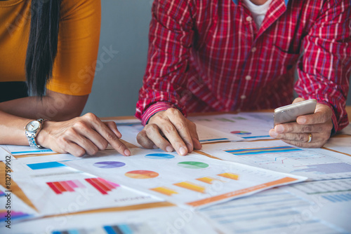 Obraz premium Top view business people meeting together at office desk in conference room....
