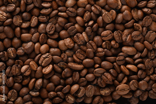 Naklejka premium TOP VIEW: Close Up of Roasted coffee beans.