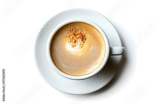 Fototapeta premium top view coffee cup isolated on white background, caffeine drink clipping path