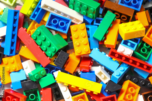 © keatikun, Obraz premium Top view colorful Kids toys frame background