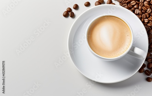 Fototapeta premium Top view cup of coffee with beans.