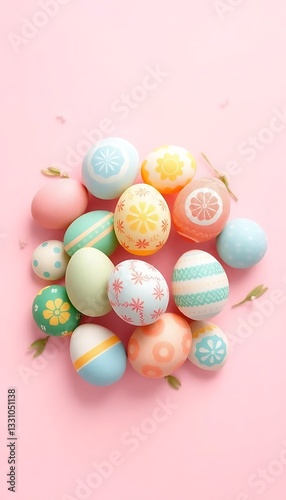 Fototapeta premium Top View Easter Eggs Pastel Pink Background