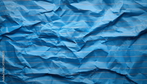 © Rindi, Obraz premium Top view empty blue lined paper with wrinkled background and texture. Generated image