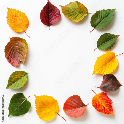 © mohamed, Fototapeta premium Top View Frame with Colourful Leaves and Copy-Space