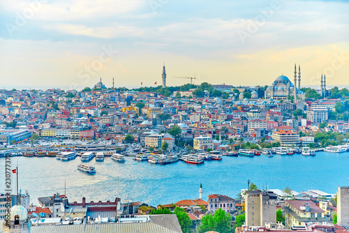 Fototapeta premium Top view from Galata Tower in Istanbul at sunset time