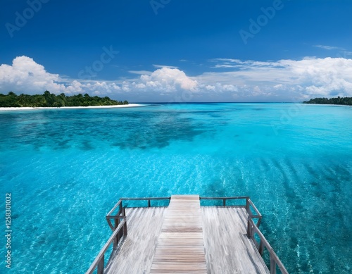 © Nida, Obraz premium Top view from the input dock which leads to a tropical paradise, with clear blue sea water