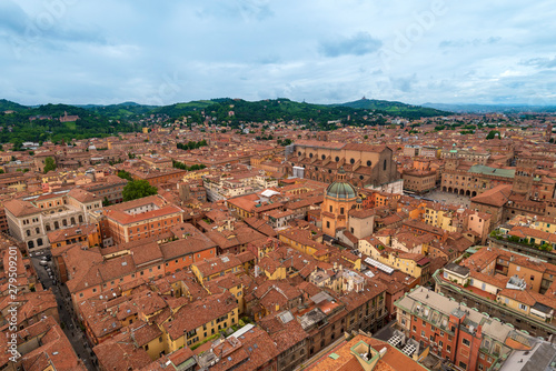 Obraz premium Top view from the tower Asinelli at Bologna, Italy. Old town, red tiled roofs.