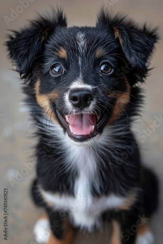 Fototapeta premium Top view happy beautiful domestic dog and puppy
