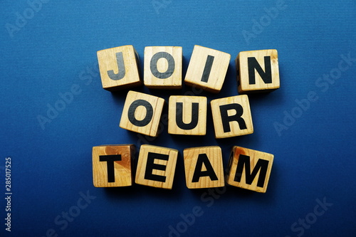© may1985, Obraz premium Top view Join our team alphabet letters on blue background