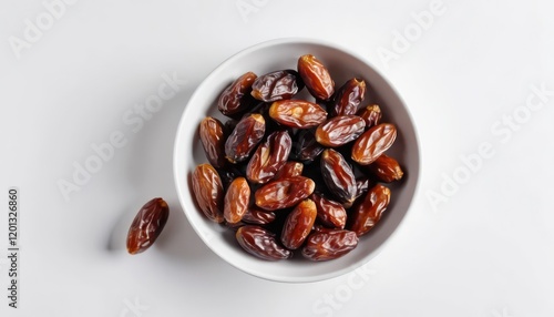 © Diclonius, Obraz premium Top View of a Bowl of Fresh Dates on a Clean White Surface Background