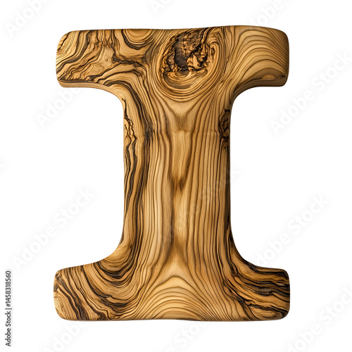 Fototapeta premium Top view of a 3D letter I made of Ash wood isolated on a white transparent...