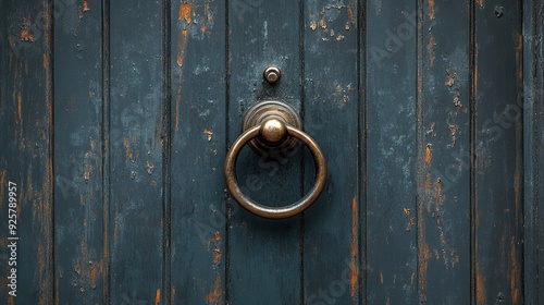 Fototapeta premium Top view of a door with a knocker, clean background with copy space