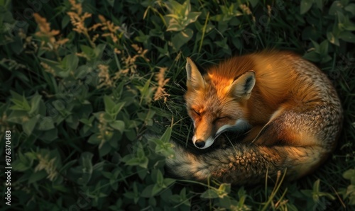 © TheoTheWizard, Naklejka premium Top view of a fox prowling through the forest