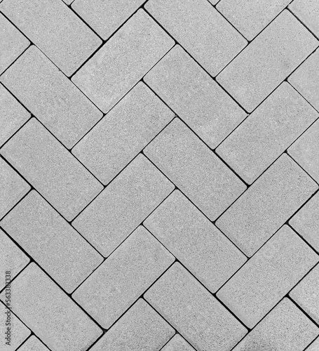 Obraz premium Top view of a gray brick outdoor flooring in a zig zag pattern