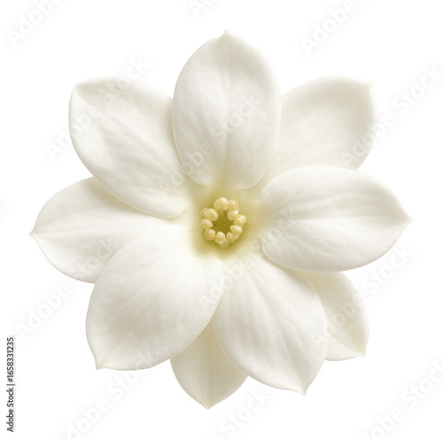 © OMD, Fototapeta premium Top view of a single white Arabian jasmine flower.