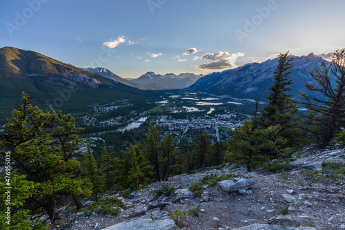 © Pavel, Obraz premium Top view of a town Banff in a Bow river valley