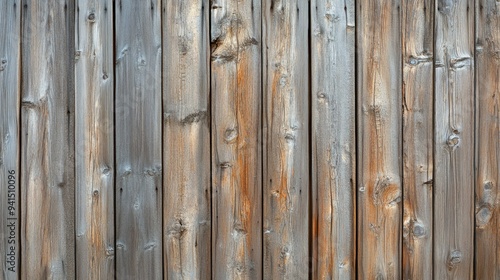 © Matcha_09, Naklejka premium Top view of a wooden fence with vertical planks, showcasing natural weathering and rough textures, ideal for a rustic background