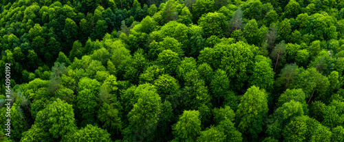 © Retno, Naklejka premium Top view of a young green forest in spring or summer