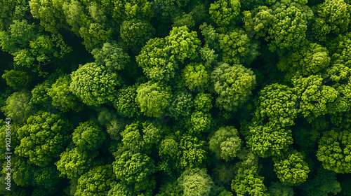 © CreativeCreations, Naklejka premium Top view of a young green forest in spring or summer