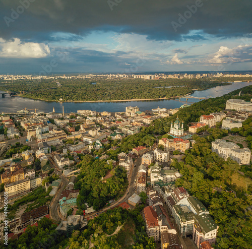 © drummatra, Fototapeta premium top view of Andreevsky descent and Andreevsky church, Kyiv, Ukraine