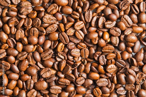 Fototapeta premium Top view of aromatic roasted coffee beans.