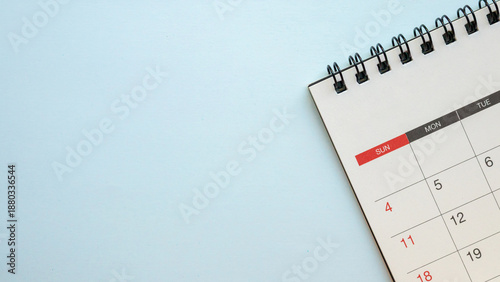 © Kwangmoozaa, Fototapeta premium Top view of blank spiral desk calendar on light blue background with ample copy space for scheduling