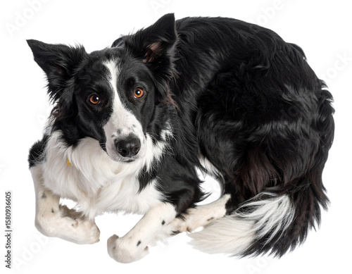 © MdJillur, Fototapeta premium Top View of Border Collie Lying in Relaxed Pose, isolated on a transparent background.