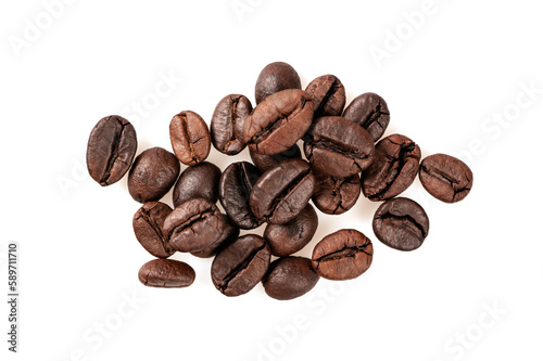 © Suraphol, Naklejka premium Top view of Coffee beans isolated on white