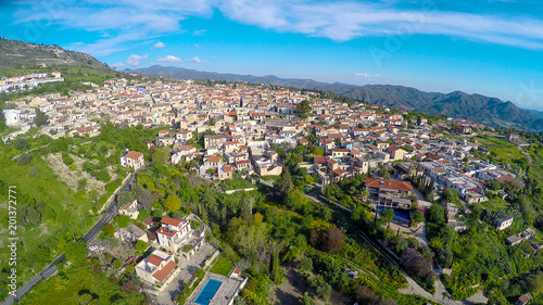 Naklejka premium Top view of Cyprus real estate for sale or rent, beautiful mountain resort town